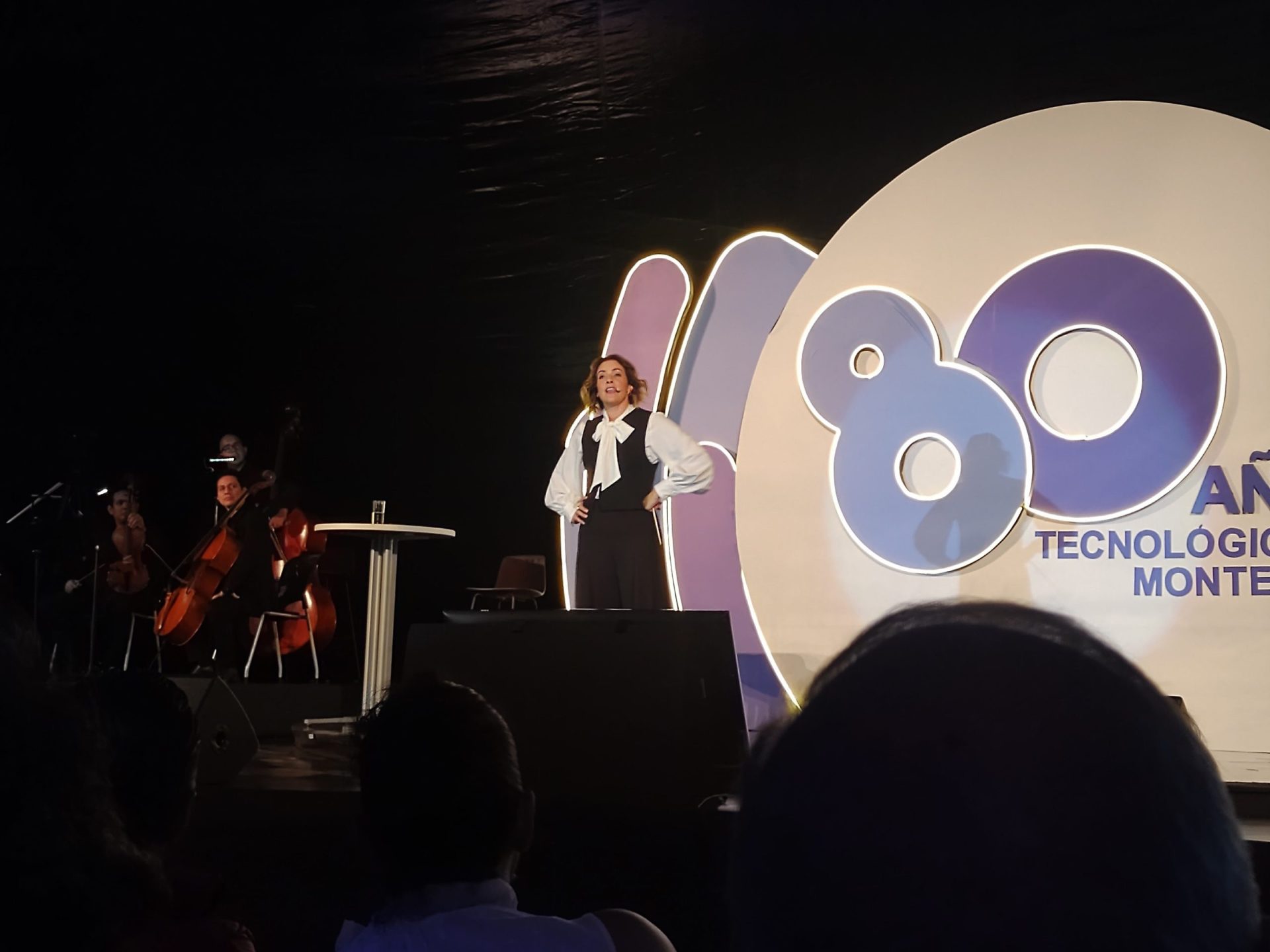Regina Trujillo Mateos, estudiante de la Licenciatura en Biociencias del Tecnológico de Monterrey, y maestra de ceremonias del evento, agradeció a la conferencista por compartir su visión sobre el liderazgo a través de la lente de la música y mencionó que su conferencia inspirará a los jóvenes a ver las similitudes entre el arte y los negocios de una manera completamente nueva.