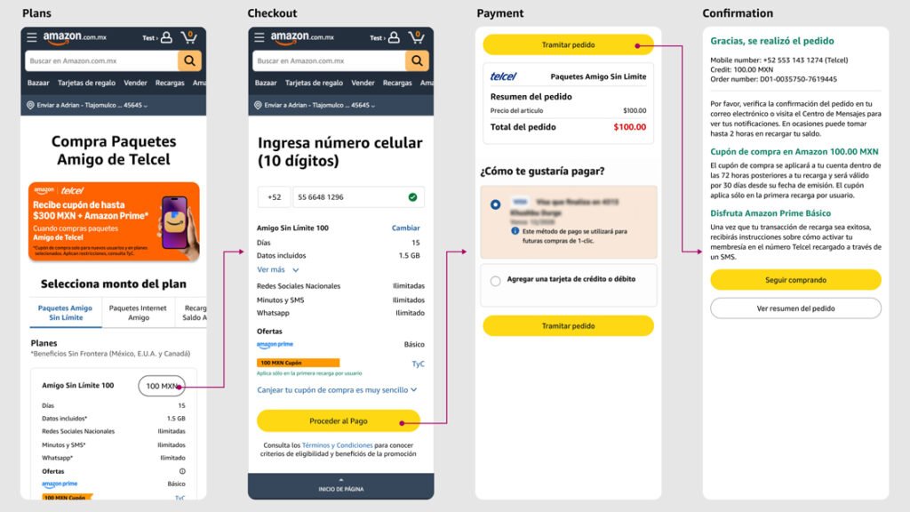Para más información sobre los Paquetes Telcel Amigo y los beneficios de Amazon Prime, visita: www.amazon.com.mx/dsv/recharge/welcome