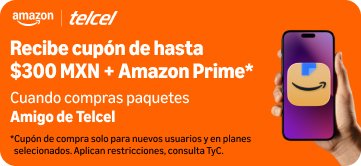 - Oferta por tiempo limitado: al comprar su primer Paquete Amigo de Telcel en Amazon, los clientes reciben un cupón equivalente al valor de compra (hasta 300 pesos) para usar en Amazon.com.mx
