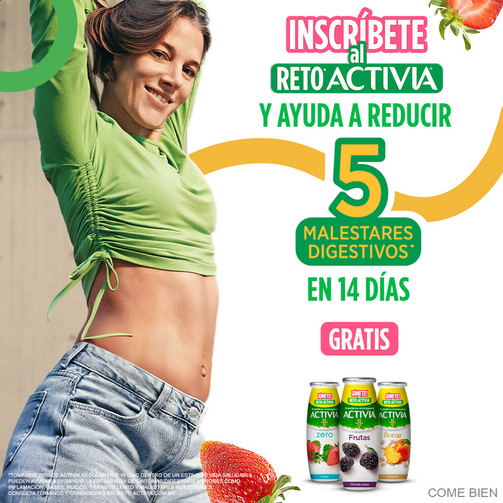 Bajo el lema “Lo normal, es sentirse bien”, Reto ActiviaⓇ 2024 es un aliado ideal que ayuda e inspira la adopción de acciones sencillas en la rutina diaria, integrando la actividad física, el bienestar emocional y una alimentación balanceada, que incluye el consumo de probióticos exclusivos de ActiviaⓇ para ayudar a reducir 5 malestares digestivos*.