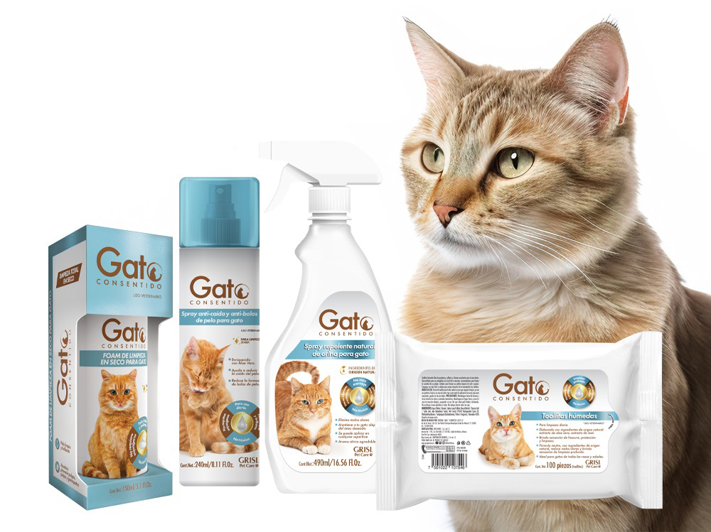 Gato Consentido de Grisi Pet Care es una innovadora marca que cuida a tu gatito y tu hogar con productos prácticos y naturales con fórmulas suaves, pensadas especialmente para gatos.