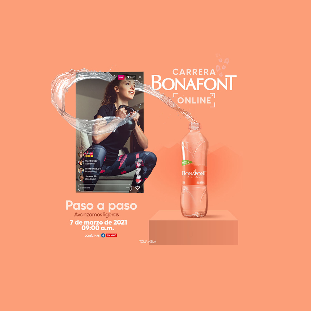 - La Carrera Bonafont Online 2021 se vivirá a través de las de las cuentas de redes sociales de @BonafontMX. Las participantes deberán ingresar desde sus hogares a un dispositivo electrónico (computadora, laptop, tablet o celular) y dirigirse a las historias de la red social, ahí podrán unirse al evento “En Vivo”.