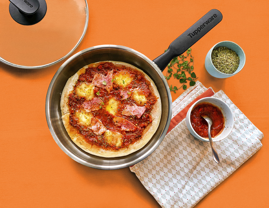 Tupperware® te comparte ideas y recetas para crear las mejores pizzas utilizando el Ultra tazón chico para mezclar tus ingredientes, el Sartén Universal Chef para cocinar la pizza, el Mini Chef Supersonic y el Super Dicer para picar los ingredientes y el Rallador Chef para rallar el queso. Finalmente apóyate del Servi pro alto y bajo para colocar aceite de oliva y vinagre balsámico para dar un toque único al servir.