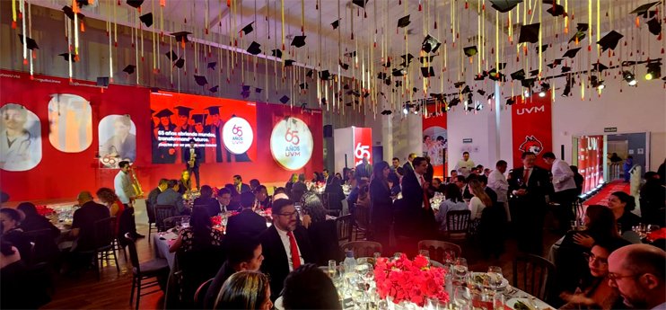La Universidad del Valle de México (UVM) celebró su 65 aniversario con una cena conmemorativa, que marcó seis décadas y media de compromiso con la educación de calidad y la formación de profesionales que han contribuido al desarrollo de México. La celebración reunió a la comunidad universitaria, distinguidos egresados y actores clave, quienes pudieron conocer los hitos marcados a lo largo de la historia de esta institución y su impacto social.