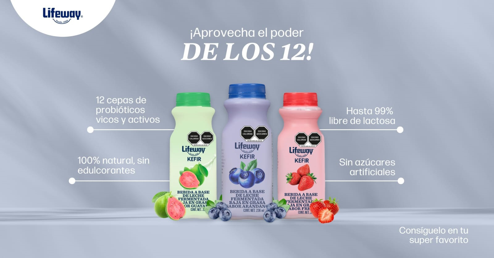 • Lifeway Kéfir no es solo una bebida láctea fermentada, es el único que contiene 12 cepas de probióticos vivos y activos