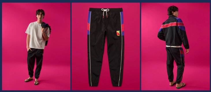 Los cargo parachute pants son el punto ideal entre la tendencia y la funcionalidad, así que dialogan perfecto con la energía visual de Jorge Campos.