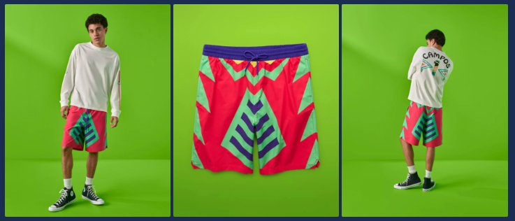 La clave está en el contraste. Por un lado, las piezas de spring aportan una base femenina, casual y muy actual: tube tops, jeans holgados, parachute pants, mini skirts y shorts. Por el otro, la colección de Jorge Campos introduce al color vibrante, referencias futboleras, prints gráficos, chamarras de calentamiento, shorts deportivos, gorras y piezas que convierten cualquier outfit en una declaración visual. en una declaración visual.