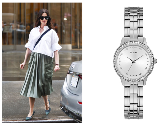 Caja cuadrada, diseño delgado y pulsera metálica. Este reloj se funde con el estilismo como una extensión natural, elevando conjuntos monocromáticos o de inspiración ejecutiva. Su brillo es medido, pero impacta. Guess presenta como opción un modelo con forma geométrica sutil y acabado plateado pulido, es la opción ideal para esta estética refinada.