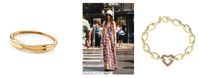 Una pieza fina con incrustaciones de brillo o textura ligera puede hacer toda la diferencia. Es ideal para looks con mangas tres cuartos o prendas que dejan visible la muñeca, añadiendo un acento delicado. El brazalete dorado con circonias sutiles (Beloved) aporta ese toque luminoso sin robar protagonismo.