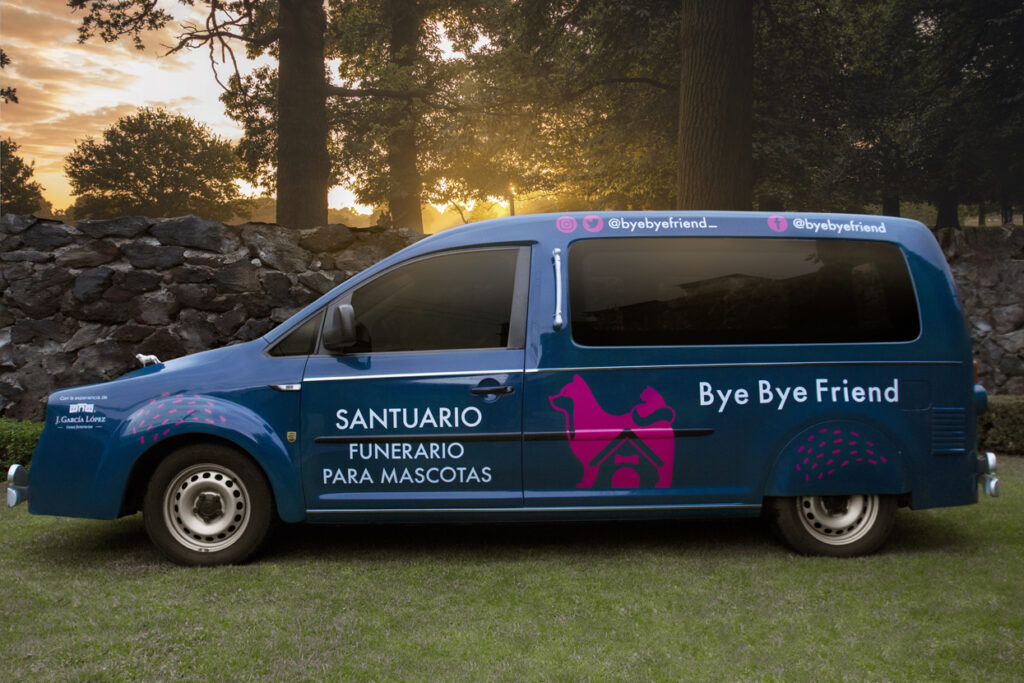 Hoy por hoy, Bye Bye Friend es la única empresa en México que desarrolla un ritual tanatológico para despedir mascotas. Además, cuentan con equipos especializados en arreglo estético y cremación animal, así como una carroza diseñada específicamente para transportar a las mascotas desde su domicilio hasta alguno de los santuarios.