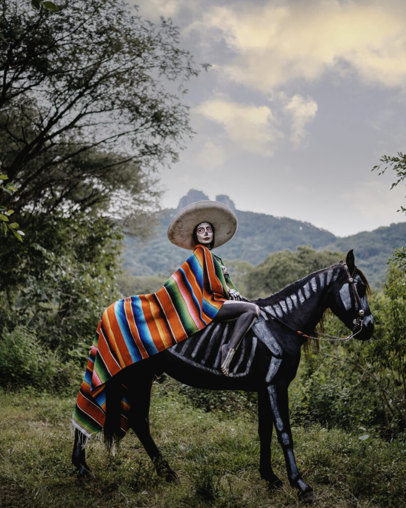 • Piensa en todos los que colaboran. «Las sesiones de catrinas suelen ser colaborativas: detrás de cada foto hay maquillistas, diseñadores de vestuario, modelos y fotógrafos trabajando juntos. Procura hacer imágenes útiles para cada participante —retratos del maquillaje, del vestido o de la puesta en escena— y al compartirlas, acredita siempre a todos los involucrados. Es una forma de reconocer el esfuerzo colectivo y fortalecer futuras colaboraciones.»