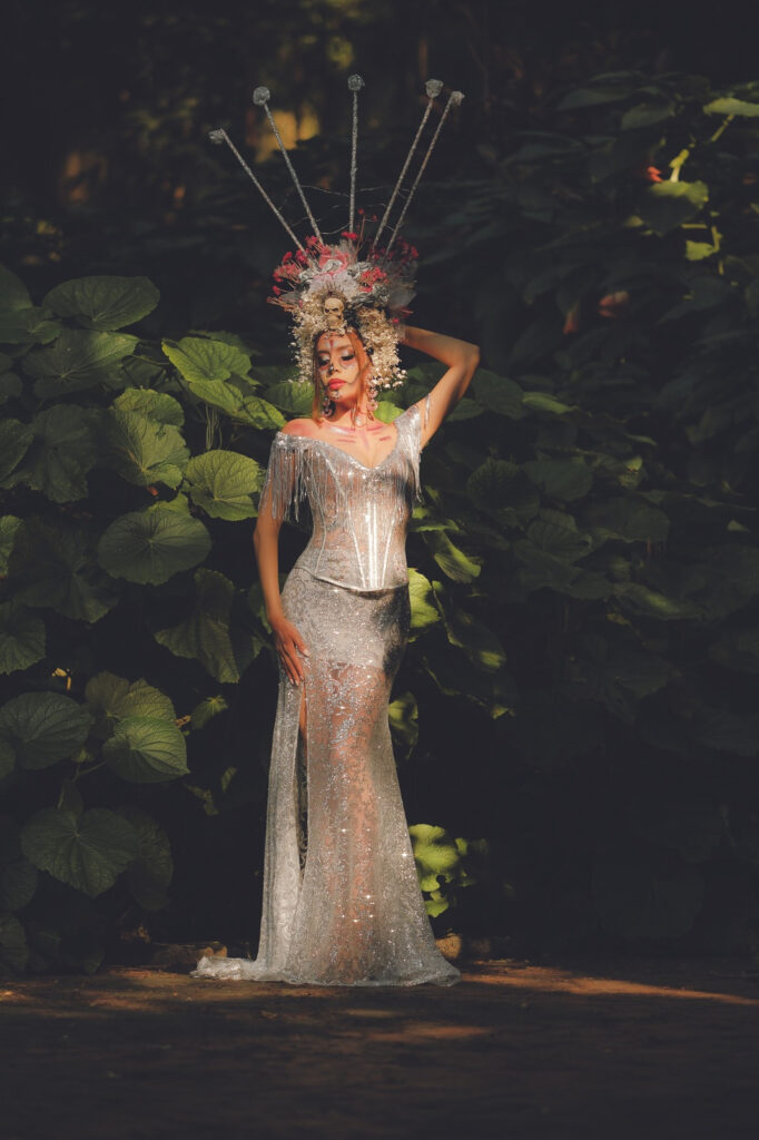 • Juega con distintos encuadres. «No te limites a un solo tipo de toma. Haz retratos cerrados para resaltar los detalles del maquillaje y la mirada, planos medios para mostrar el vestuario y la expresión corporal, y encuadres completos donde se aprecie toda la producción, de pies a cabeza. Esta variedad no solo enriquece tu serie, sino que te permite contar una historia visual más completa del personaje y su entorno.»