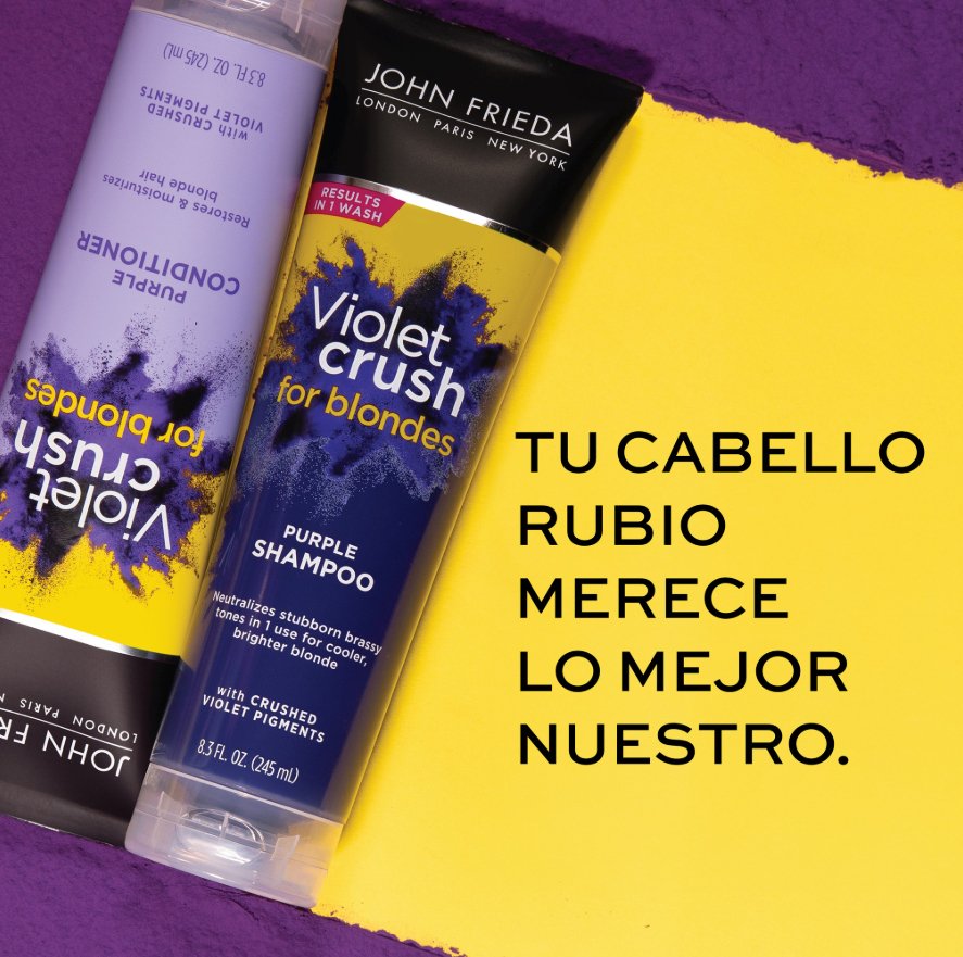 Para combatir eficazmente los tonos cobrizos y realzar la luminosidad del rubio, John Frieda® presenta su línea Violet Crush, ideal tanto para rubios naturales como teñidos, con reflejos o balayage. Sus fórmulas profesionales, disponibles en shampoo y acondicionador, incorporan pigmentos violetas y azules triturados que neutralizan al instante los tonos amarillos y naranjas más persistentes. Con el uso repetido, Violet Crush logra una tonificación uniforme y devuelve al cabello su aspecto fresco y radiante, justo lo que necesitas en esta temporada de invierno.