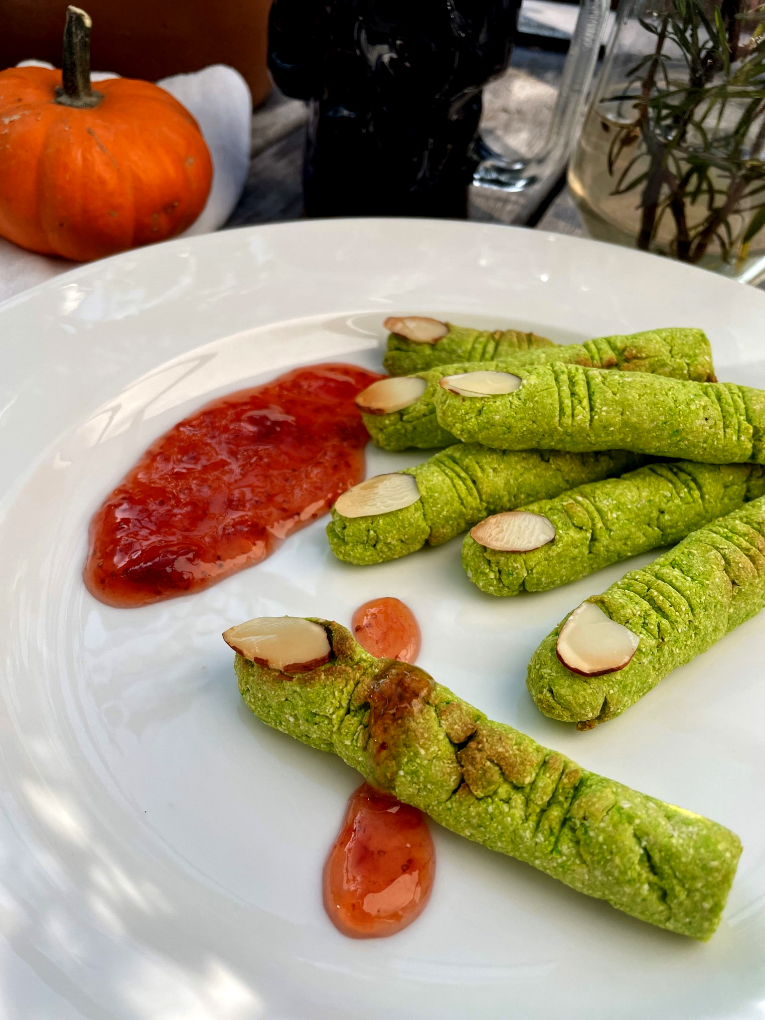 - Dibujar las arrugas con un palillo y colocar las almendras fileteadas en una punta, formando uñas.