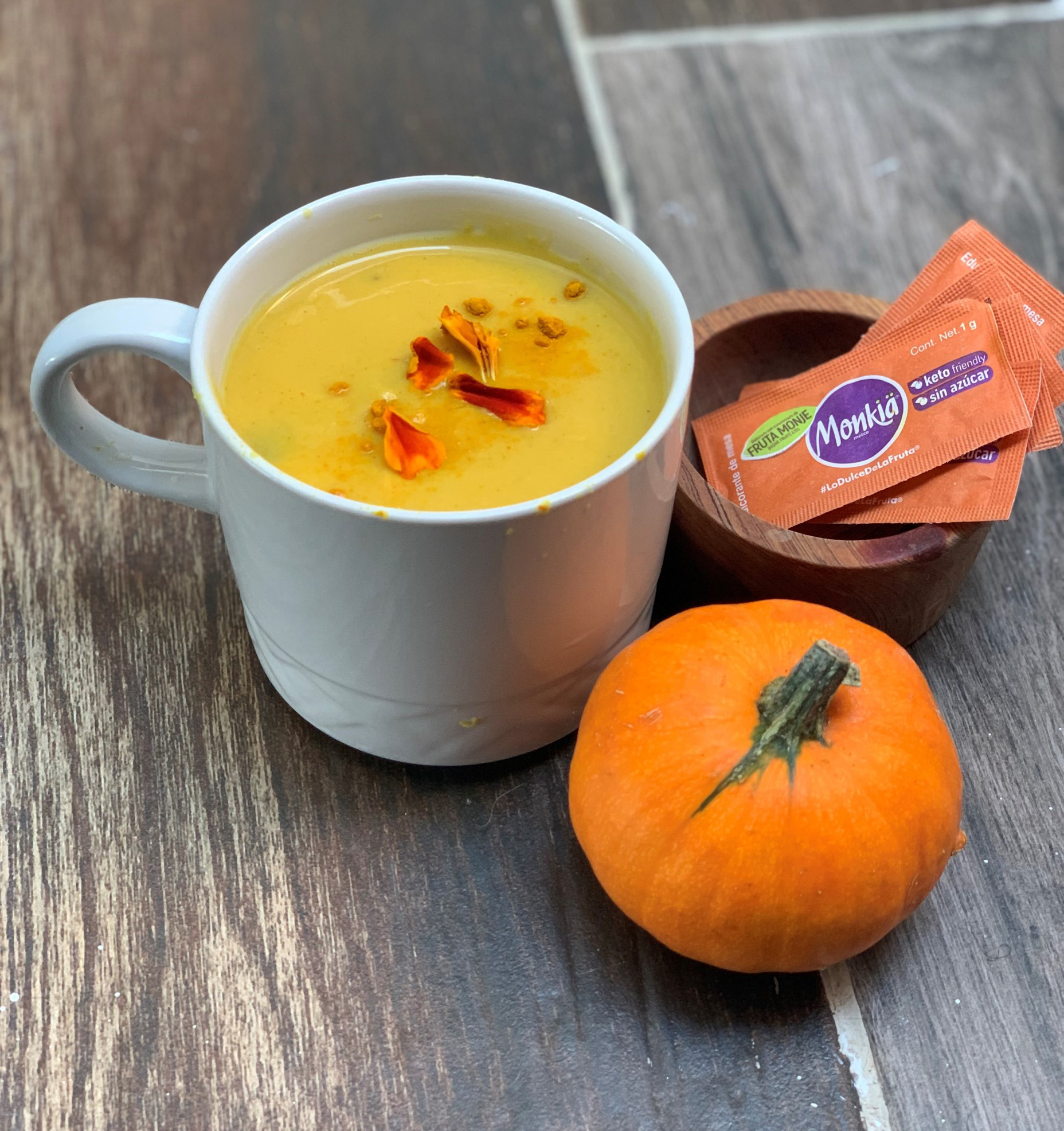 - Licuar la calabaza con Svetia, especias, fécula de maíz, huevos y crema.
