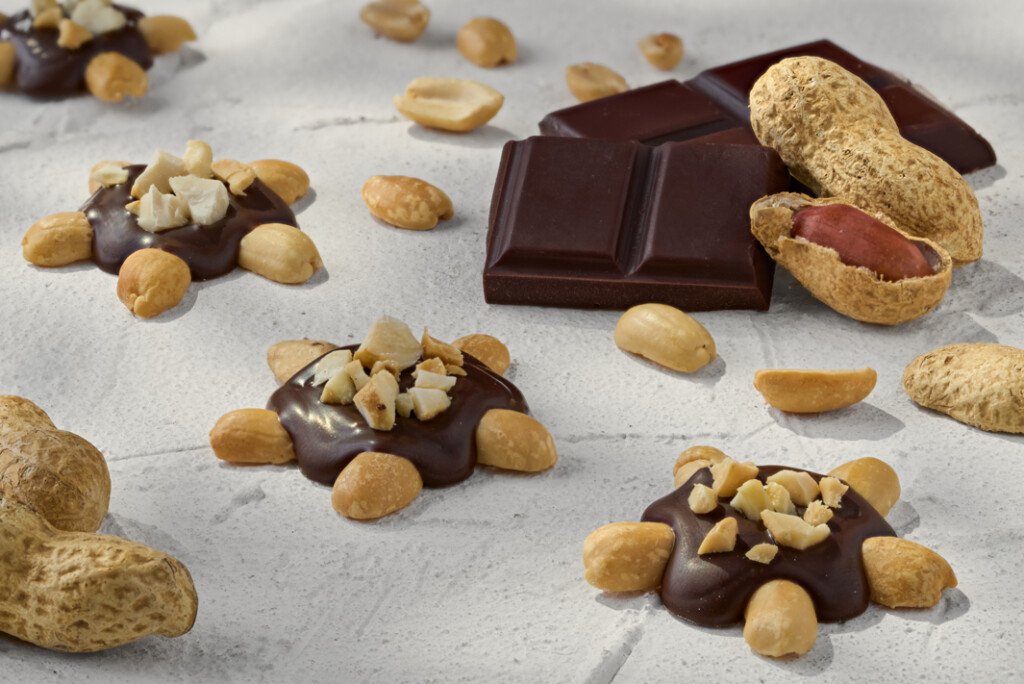 - Coloca una cucharada de chocolate fundido sobre cada montoncito de cacahuates, dejando que se adhiera y forme la base de la tortuga.