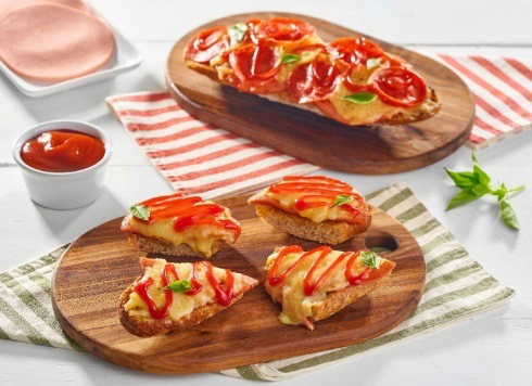 Convierte el pan rústico en una deliciosa mini pizza con mortadela, pepperoni, queso gratinado y un toque irresistible de cátsup con finas hierbas. ¡Una botana rápida, divertida y llena de sabor! Ver receta completa.