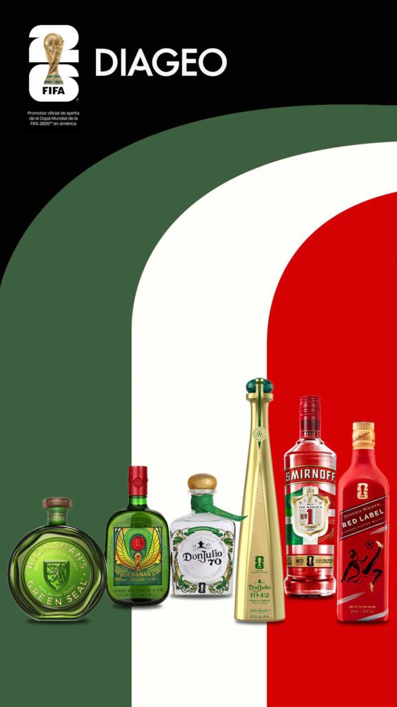 • DIAGEO transforma el exterior de sus botellas más emblemáticas en verdaderas piezas de colección. Una edición especial que reinterpreta su diseño para celebrar la forma única en que México vive un hecho histórico: convertirse en el primer país en ser anfitrión del torneo en tres ocasiones