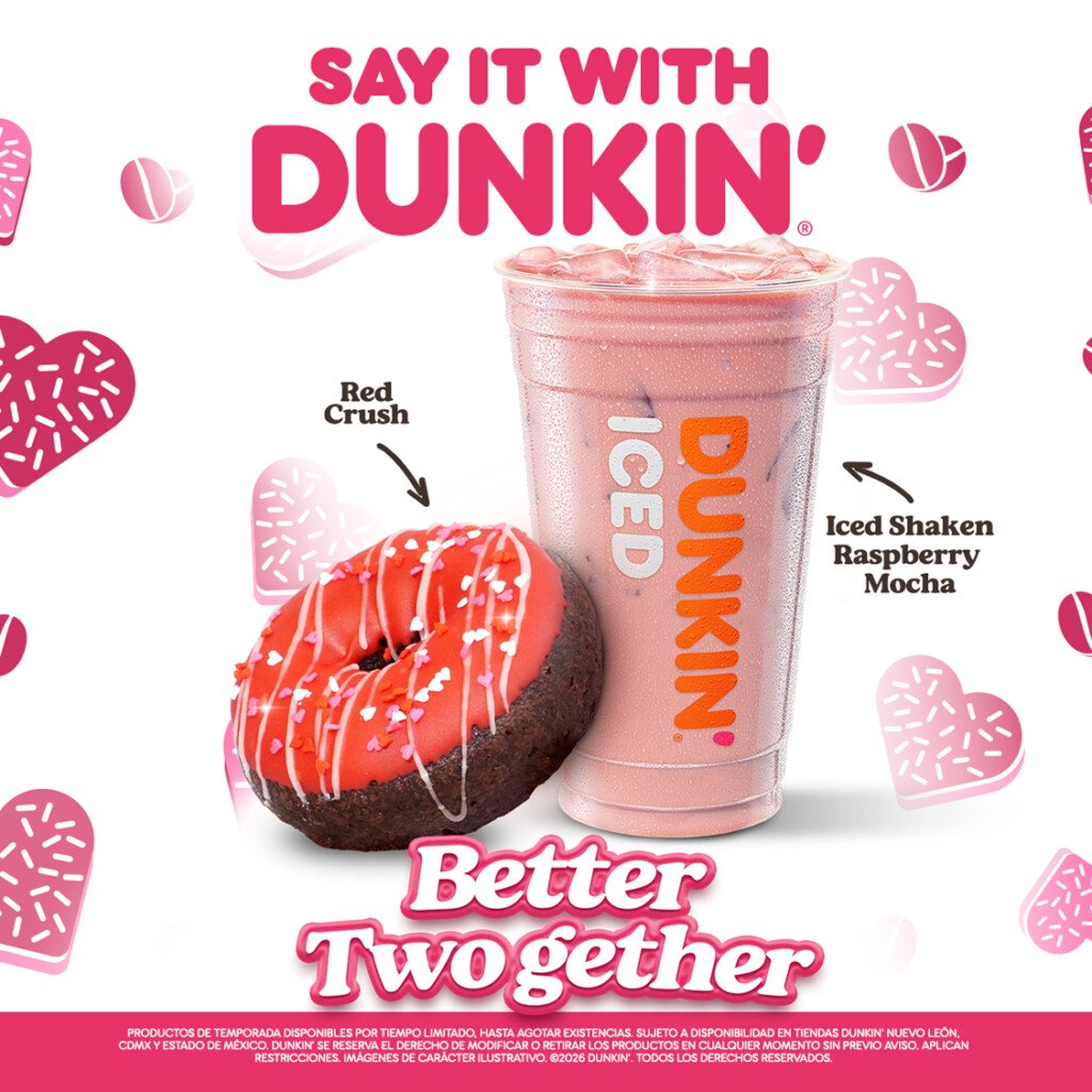 Para complementar la experiencia, Dunkin’ presenta el Iced Shaken Raspberry Mocha, una bebida fría que combina notas de frambuesa y mocha, perfecta para disfrutar en pareja o con amigos. Porque los mejores momentos… son «Better Together».
