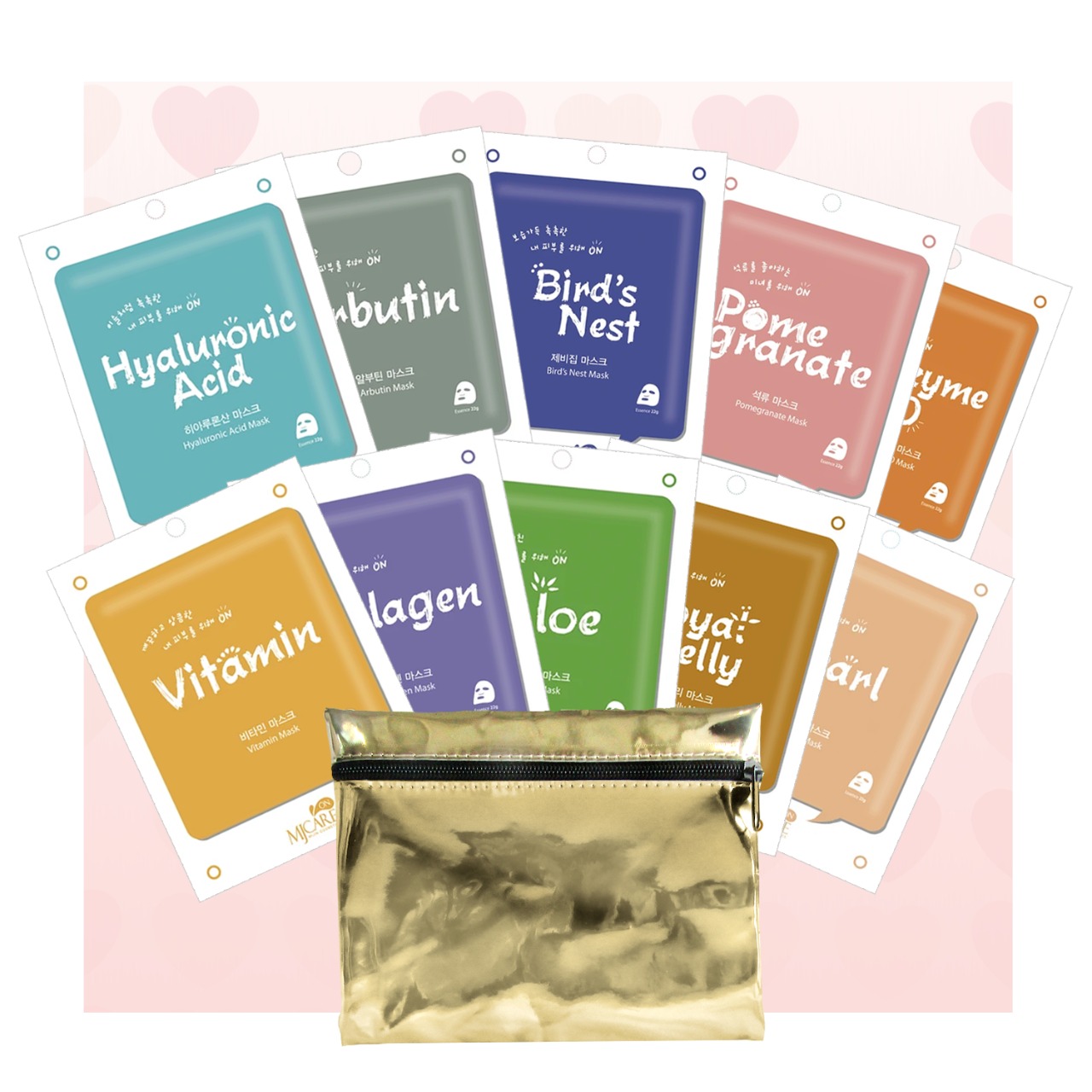 Mamma Mía. Si tu Bonnie Mommy es adicta al skincare, este kit es para ella; 10 mascarillas de la marca Mijin más una cosmetiquera… podrá probar los beneficios de cada una de las mascarillas, ya sea ácido hialurónico, colágeno, vitamina C, aloe vera, perla, granada, arbutina, jalea real o Bird’s Nest.