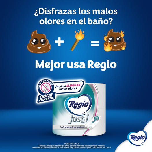 Regio va más allá de enmascarar olores; realmente ayuda eliminarlos, para que tu y tú familia puedan quitarse la pena de vivir momentos incómodos en el baño.