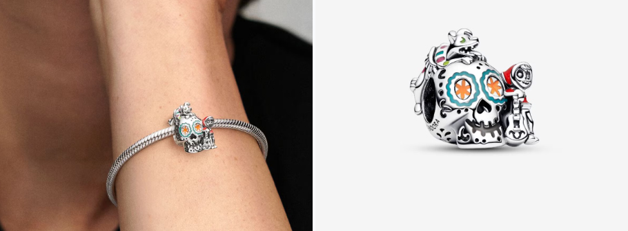 En contraste con el misterio de Halloween, Pandora presenta un charm inspirado en el Día de Muertos, una de las tradiciones más significativas y coloridas de la cultura mexicana.