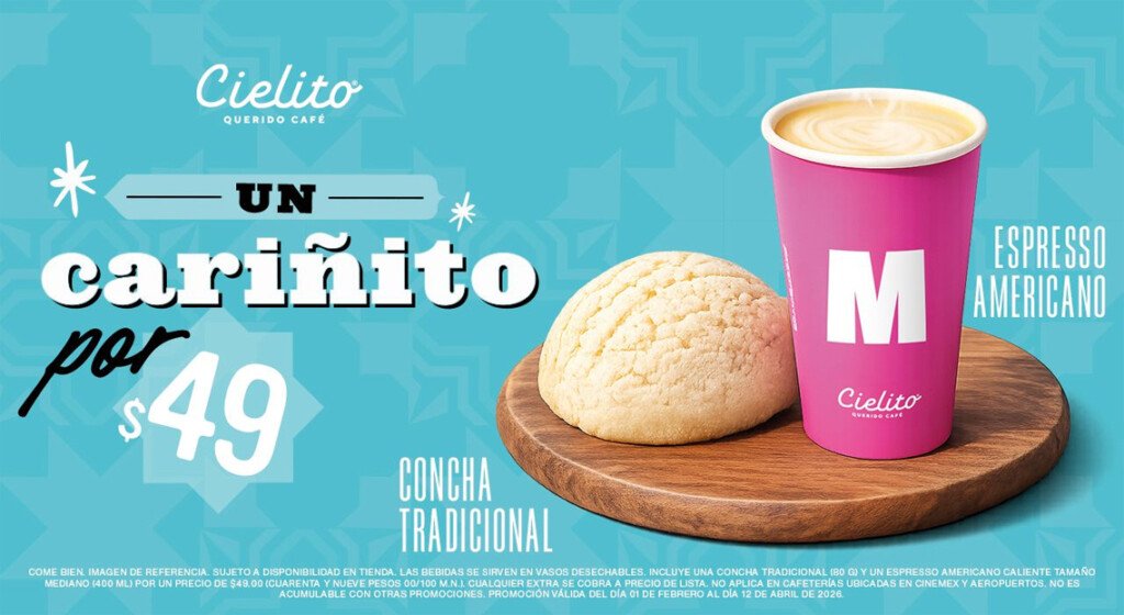 Y para quienes buscan un plan completo, Cielito Querido Café lanza una promoción especial de $49 pesos, vigente hasta el 12 de abril, que incluye: