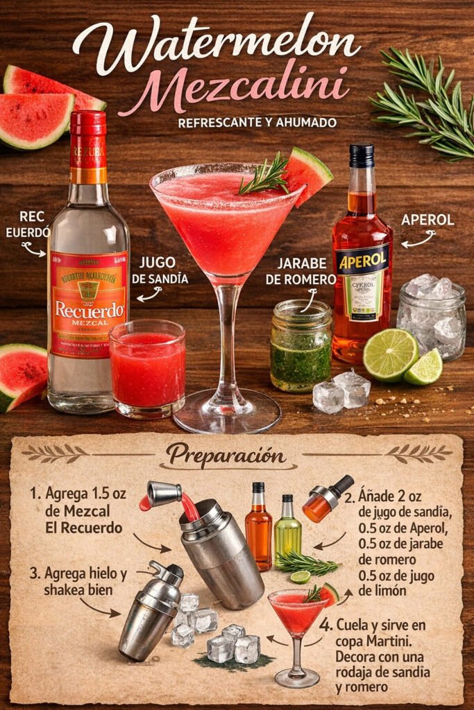 Para elevar la celebración, Mezcal El Recuerdo propone el Watermelon Mezcalini, un cóctel refrescante, ligero y lleno de color, ideal para arrancar la noche o acompañar una tarde entre amigos. La sandía aporta frescura, el Aperol un toque vibrante y el mezcal joven el carácter que distingue cada sorbo.