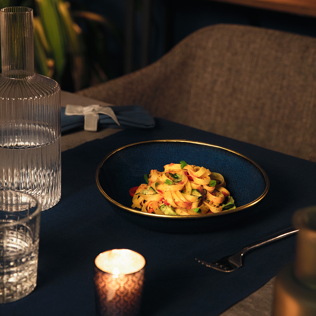 Tagiatelle con pimiento y calabacín