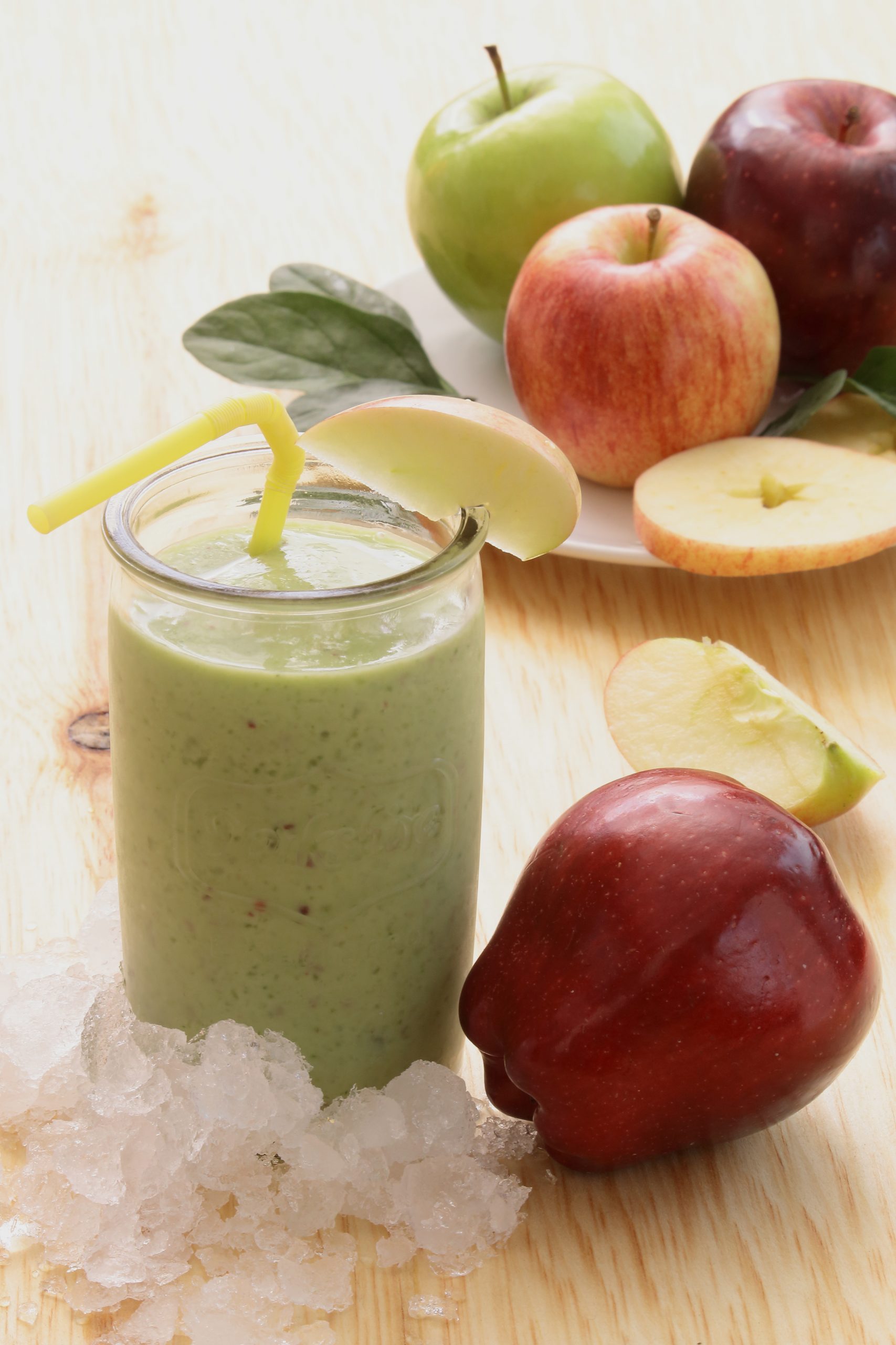 1. Licuar la leche o yogurt con la manzana, la piña, las espinacas, el aguacate y el endulzante.