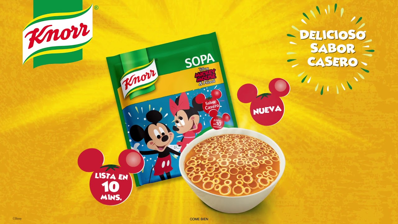 Te invitamos a probar la Nueva Sopa Knorr® con imagen de Mickey y amigos, para hacer la hora de la comida más divertida y que las más y los más pequeños disfruten más de este momento del día. ¡Pruébala y diviértete!