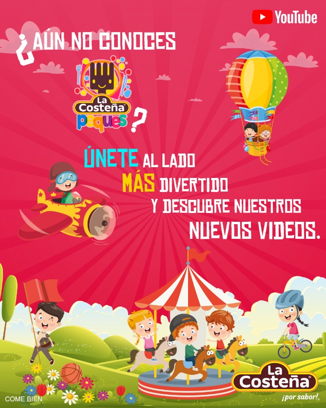Sigue el canal de YouTube de La Costeña® Peques para conocer las novedades y el contenido existente, el cual te ayudará a salir de la rutina y a encontrar otras formas de hacer actividades comunes, ¡pero de manera más dinámica!