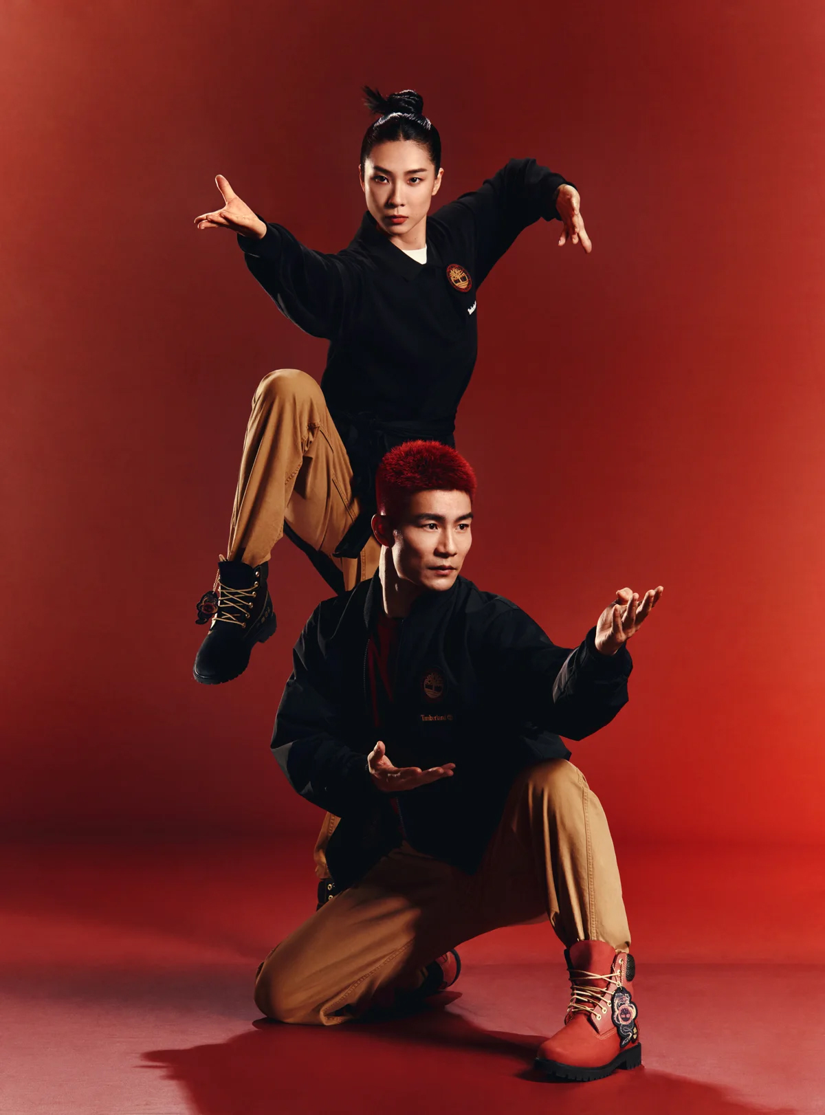 Producida por un talentoso equipo de creativos y fotógrafos chinos de Shanghái, la campaña del Año del Dragón presenta a dos modelos chinas profesionales de Kung Fu vestidas con la colección especial Año Nuevo Lunar de Timberland®. Muestran los movimientos del Kung Fu chino con una gracia excepcional, completando un total de 18 poses clásicas. El modelo masculino irradia fuerza y masculinidad, encarnando el espíritu indomable del Año del Dragón. La modelo femenina equilibra a la perfección fuerza y elegancia, capturando en cada toma su aura única, y presentando una imagen de confianza y resistencia.