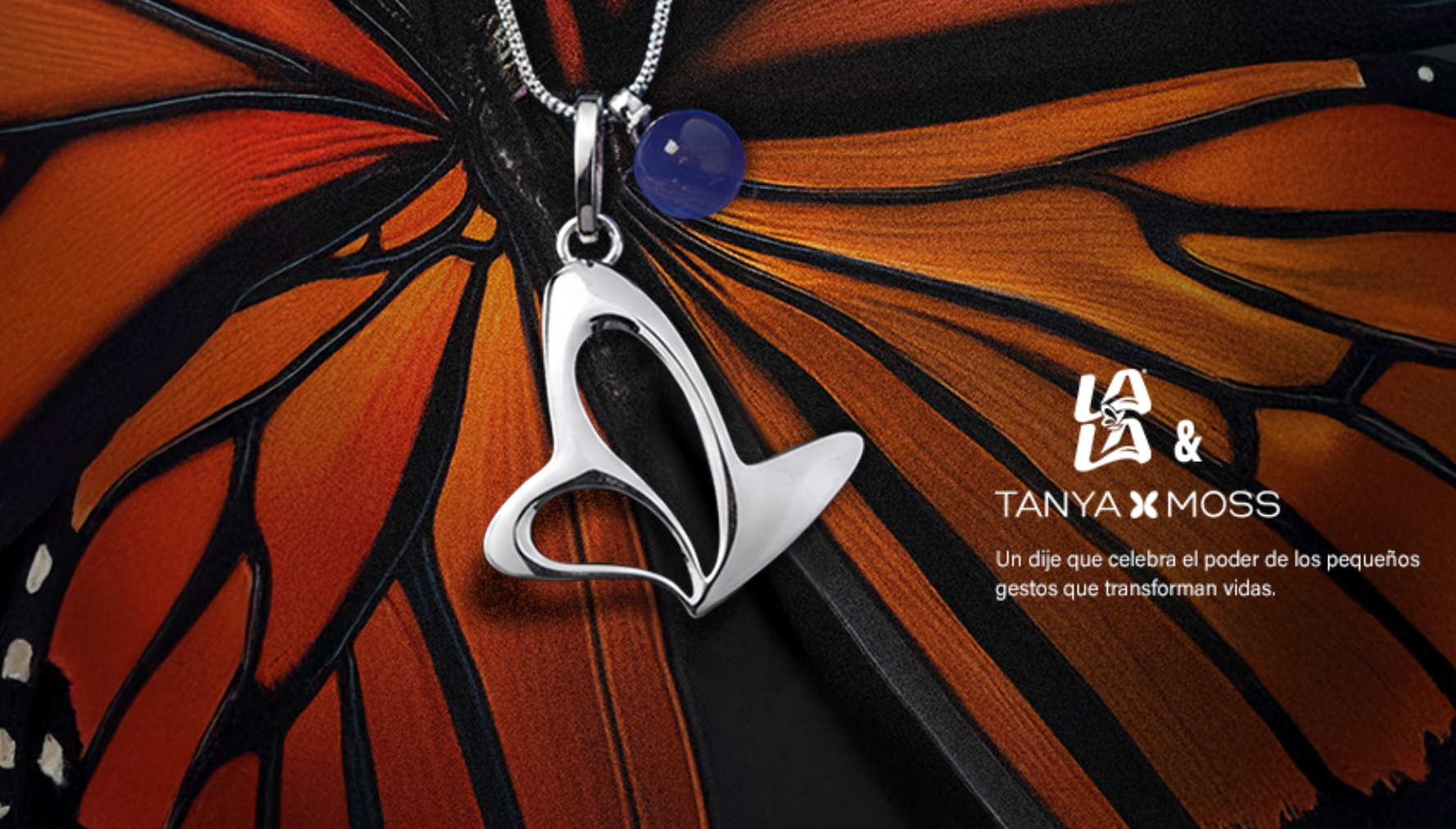 Así nació el dije conmemorativo de la mariposa Lala, «Lala x Tanya Moss», una edición limitada que celebra este vínculo. Es sencillo y poderoso a la vez, una pequeña pieza que cualquiera puede usar, porque todo gran cambio inicia con algo pequeño.