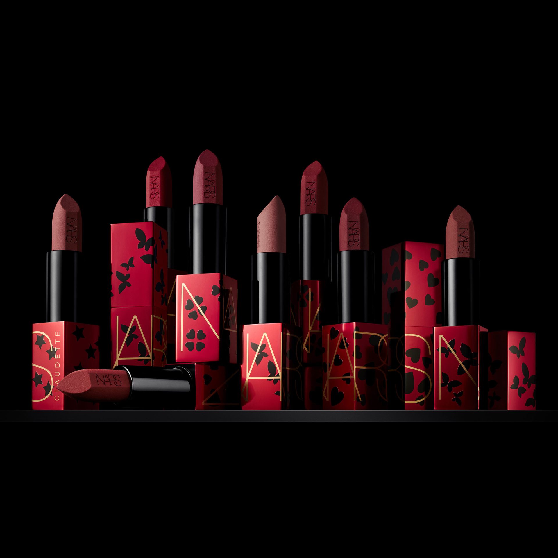 - Audacious Lipstick se desliza como seda sobre los labios con una cobertura de una sola aplicación. El color audaz y ultra saturado se siente hidratado y se mantiene sin manchar ni desvanecerse. El logotipo de NARS está grabado en el cuerpo de cada barra de labios.