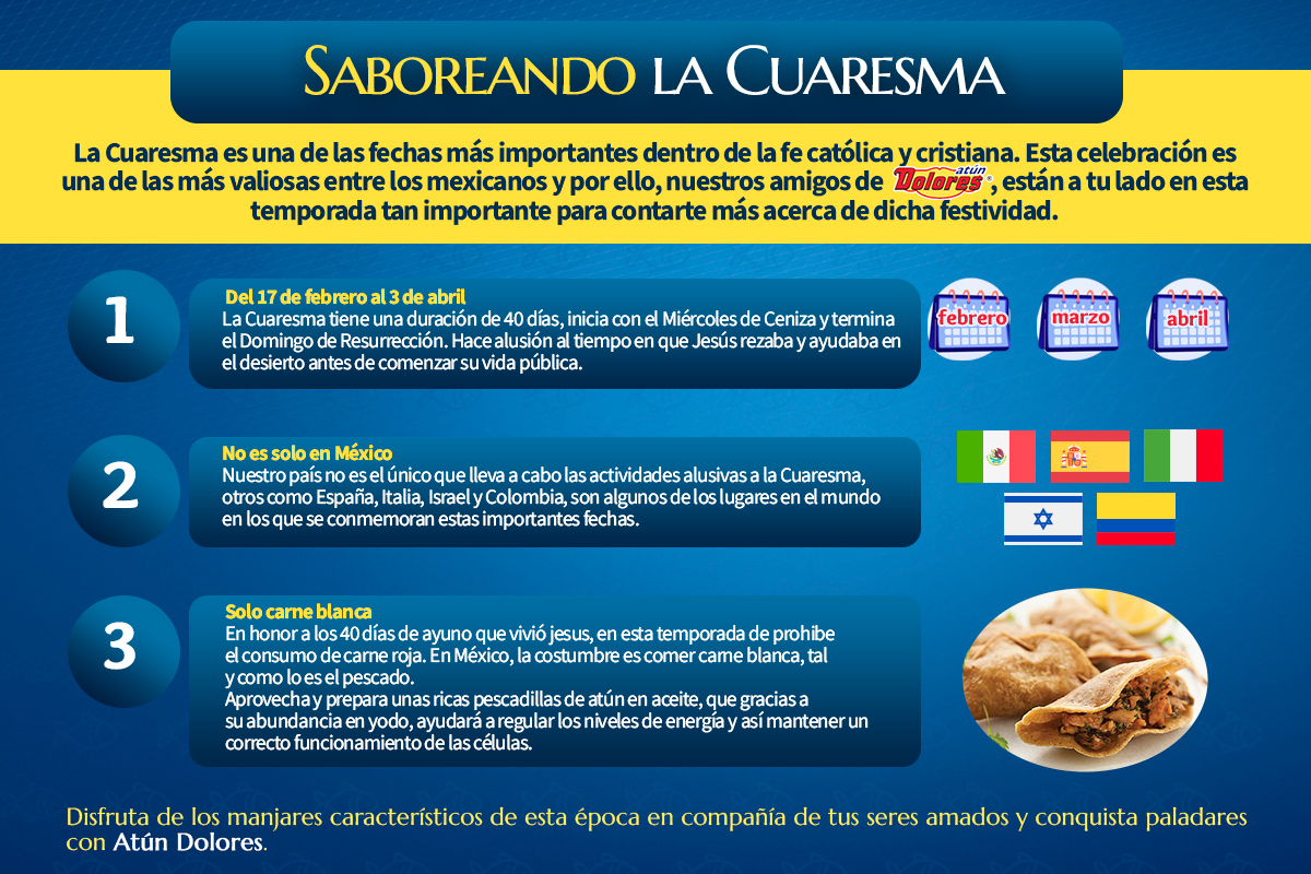 La temporada de Cuaresma es el momento ideal para disfrutar de los grandes sabores que la gastronomía mexicana nos ofrece y aventurarte a crear platillos excepcionales y nutritivos a base de pescado. En este caso, al ser el elemento principal el atún, aportarás a tu organismo una de las mayores fuentes de vitamina D, la cual contribuye a la absorción de calcio en los huesos.