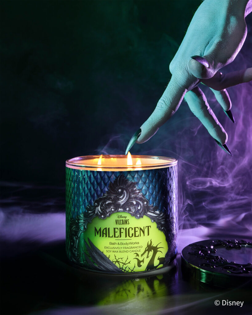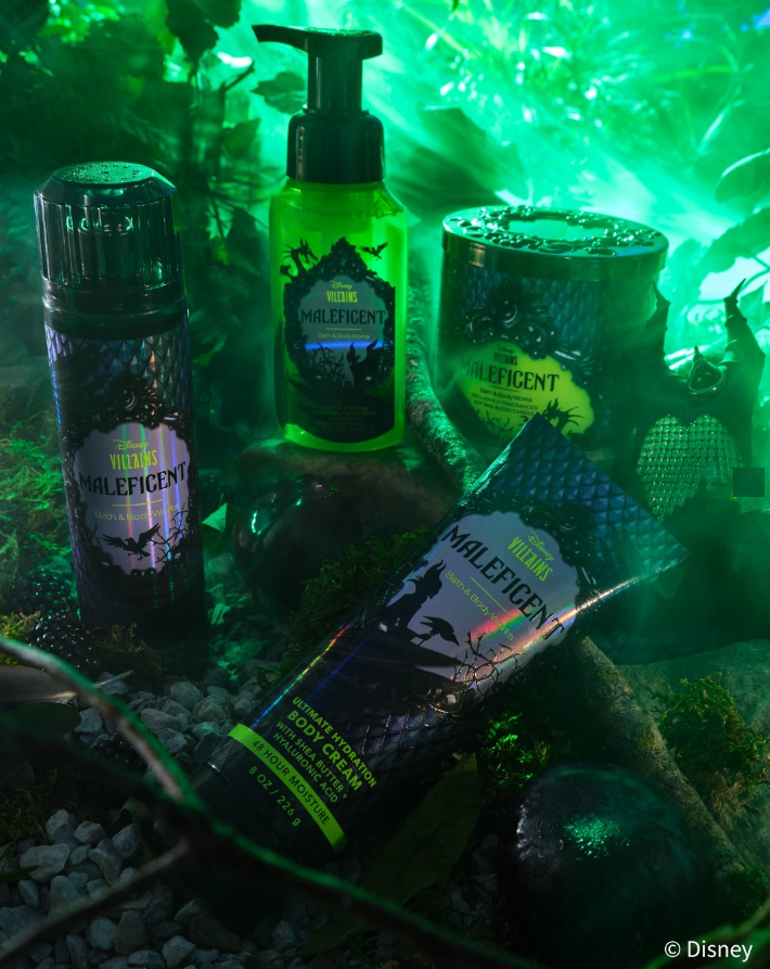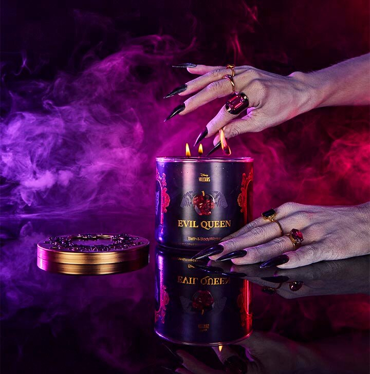 Dos nuevas fragancias inspiradas en las icónicas villanas de Disney, Maléfica y la Reina Malvada, son las protagonistas de esta colección. El surtido de más de 20 formas incluye una gama de productos como; fragancia corporal, gel de ducha y crema corporal, velas, jabón y antibacterial para manos, además de accesorios decorativos que resaltan los momentos clave de la historia de cada personaje.