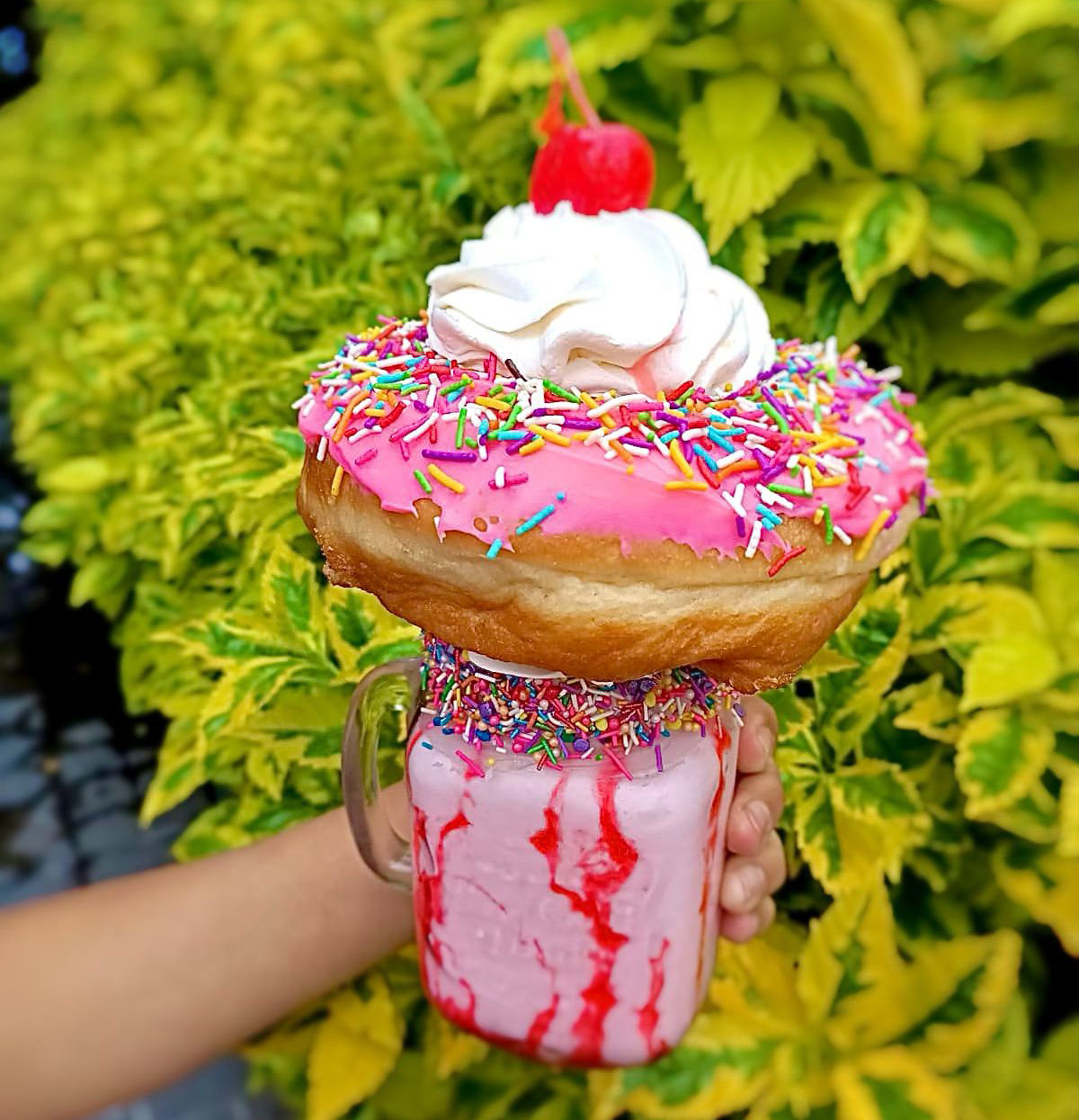 Sin dejar de lado a “La Digna”, una malteada a base de fresa, decorada con dona y sprinkles de colores Pride, coronada con crema batida y jerez.