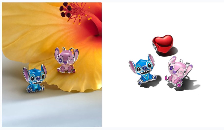 En contraste, la colección Stitch & Angel se enfoca en la complicidad que se construye en pareja y en los vínculos que se eligen día a día. Con piezas que incluyen charms individuales, dúos y sets, esta propuesta celebra la afinidad, la cercanía y la idea de compartir símbolos que representan una historia común.