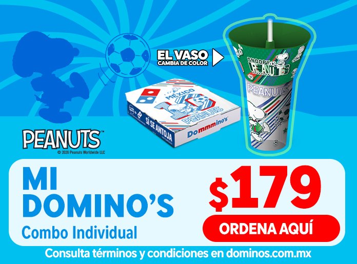 Del 6 de abril al 3 de mayo, los fans de Domino’s y Peanuts podrán adquirir uno de los dos vasos coleccionables a través de dos combos disponibles en todos los Domino’s del país: el combo individual Mi Domino’s, con una intervención especial en la caja y que incluye una pizza masa Original de un ingrediente, Baitz, Papotas y vaso por $179 pesos y el combo de adicionales, que incluye Papotas, un refresco y un vaso por $139 pesos.