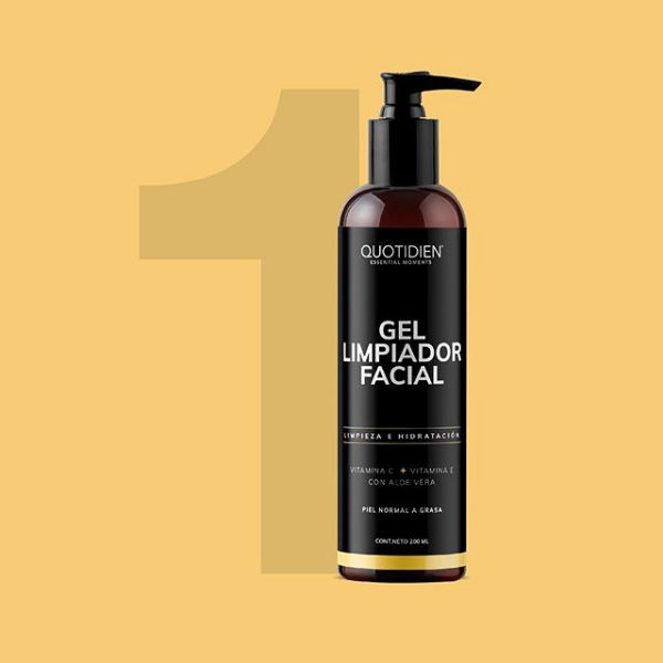 Gel Limpiador Facial. Este limpiador facial contiene una fórmula completa con ingredientes como vitamina C, vitamina E y Aloe Vera que ayudarán a realizar una limpieza profunda del rostro sin resecar dejándolo suave e hidratado. El Gel Limpiador de Quotidien tiene como objetivo limpiar, regular la grasa de la piel y calmarla para que se vea radiante y lista para comenzar una rutina de cuidado facial. Su textura en gel lo hace ideal para todo tipo de piel.