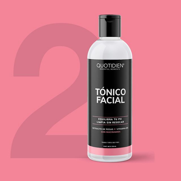 Tónico Facial. Contiene extracto de Agua de Rosas, vitamina B5 y Niacinamida, libre de fragancias y alcoholes irritantes hacen de este tónico uno de los productos preferidos de los amantes del cuidado facial. Es el segundo paso en una rutina de skin care para que el rostro obtenga una apariencia ideal, su función principal es quitar restos de suciedad, balancear el pH, cerrar poros, ayudar a calmar irritaciones y regular la grasa, ideal para todo tipo de piel, es el paso intermedio entre la limpieza y la hidratación. Deja la piel fresca y suave.