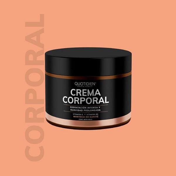 Crema corporal. Cuidar la piel de nuestro cuerpo es tan importante como cuidar el rostro, el más reciente lanzamiento de Quotidien ha sido esta crema corporal súper humectante y balanceada con Manteca de Karité, vitamina E y vitamina B5, es de rápida absorción, no deja sensación grasosa y ayuda a disminuir la sequedad en la piel brindándole el nivel de humectación necesario. Se recomienda usarla después del baño ya que es el momento en que la piel se encuentra dispuesta a recibir los beneficios de la crema. No contiene petrolatum, un derivado del petróleo comúnmente utilizado en cremas corporales.