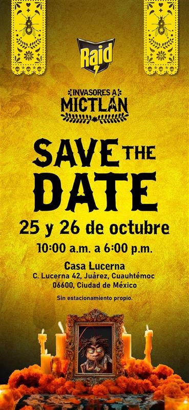 - Este Día de Muertos, Raid® llega a Casa Lucerna del 25 al 26 de octubre con una experiencia gratuita que honra a los insectos que se han ido, en un recorrido lleno de color, tradición y entretenimiento