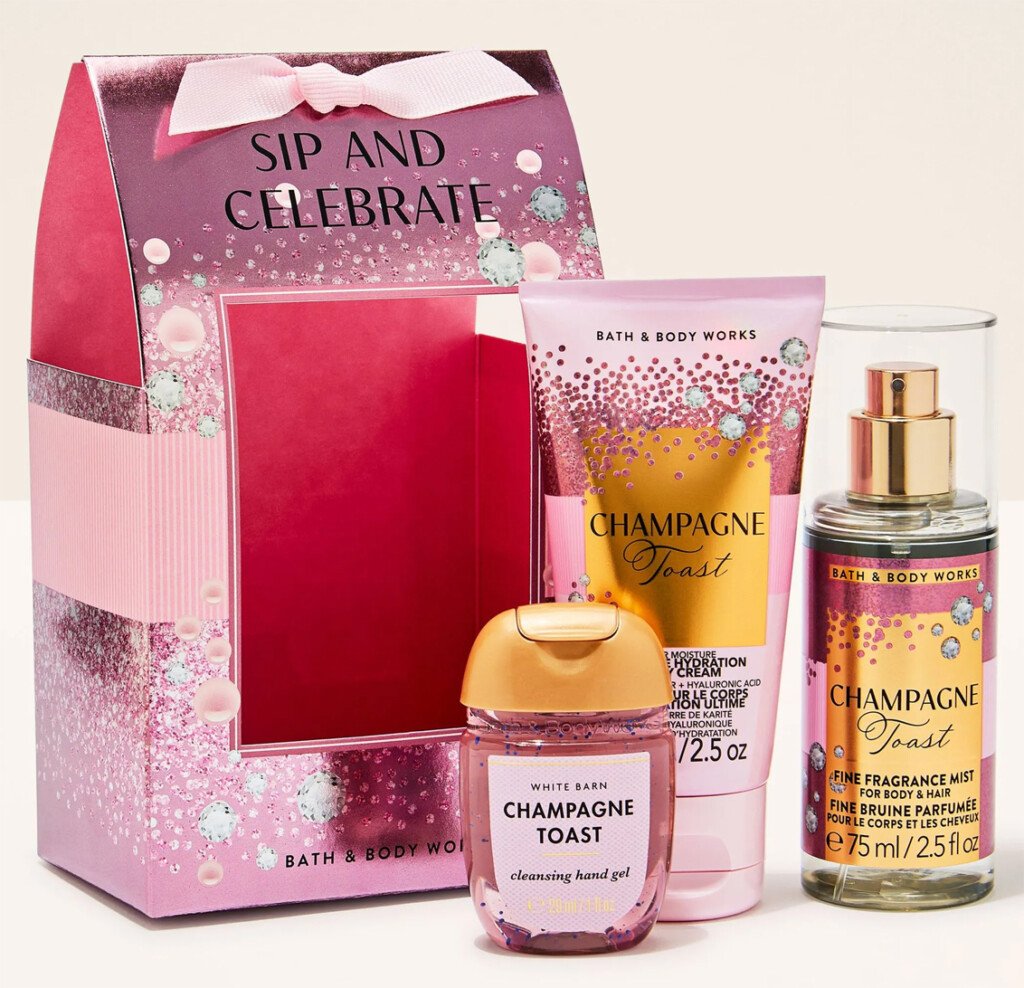 - Champagne Toast: notas de champaña burbujeante, mandarina jugosa y bayas brillantes.