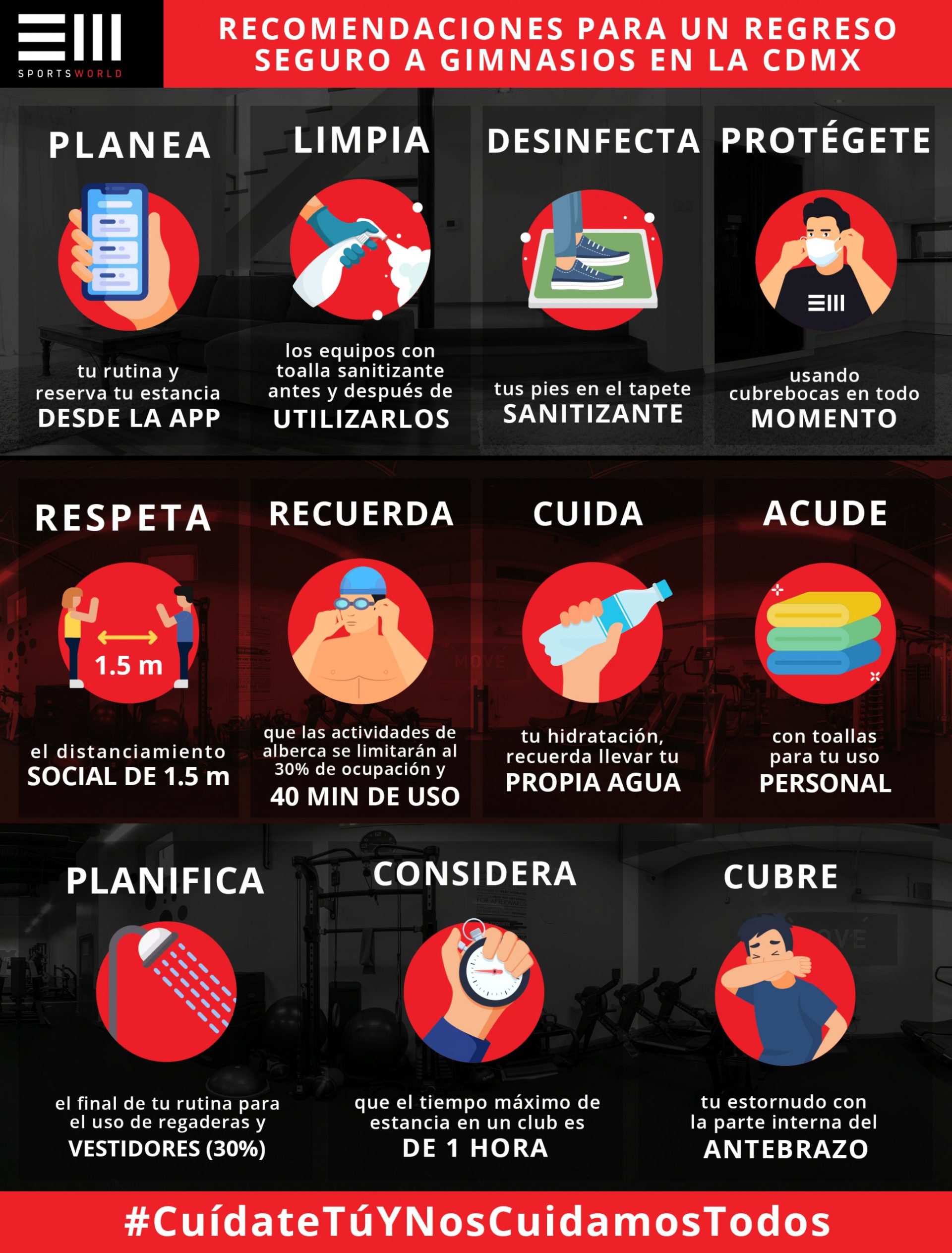 Debido a la contingencia de salud, muchas personas que están acostumbradas a la actividad física interrumpieron su entrenamiento. En Sports World estamos preocupados por el estilo de vida saludable, por lo cual te sugerimos llevar acabo estas medidas, con el objetivo de que todos nos cuidemos y podamos regresar a la normalidad lo más seguros posible.
