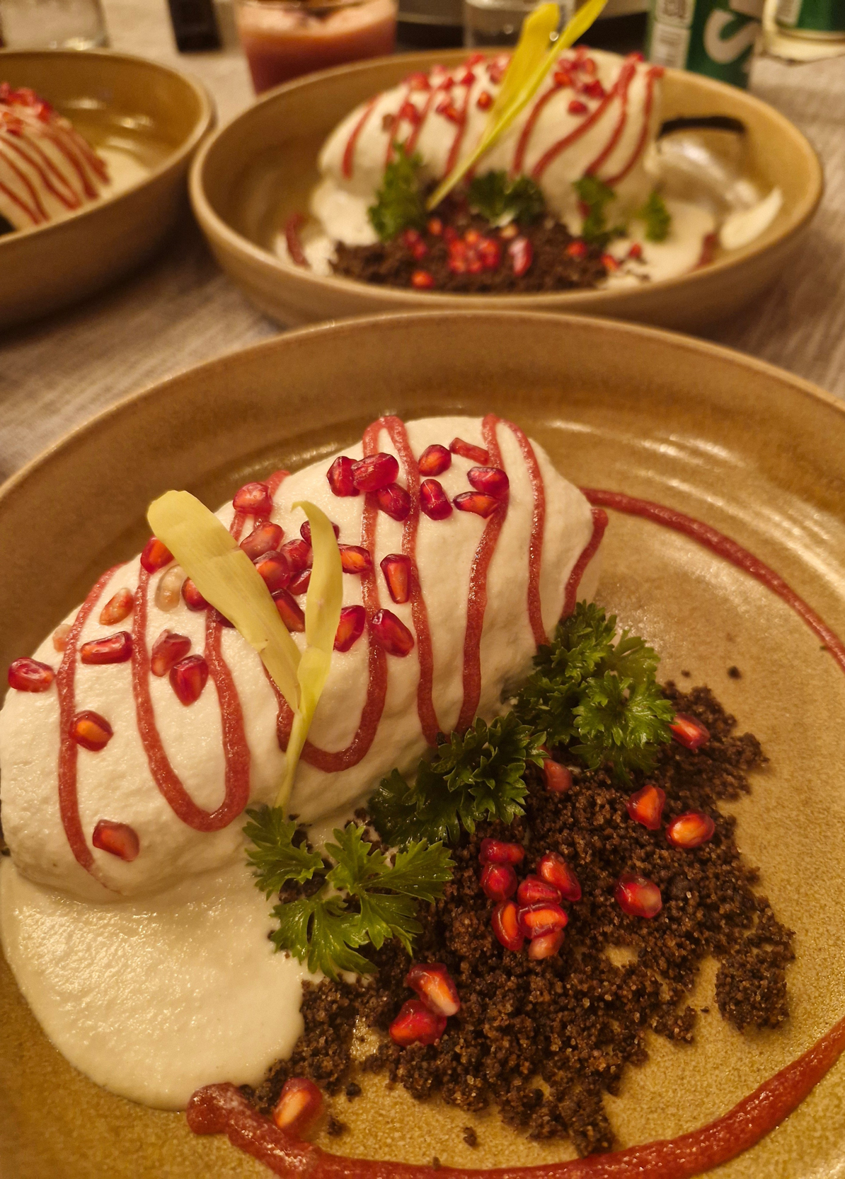 «Una versión del Chile en Nogada que rinde homenaje a la tierra, sus ingredientes y quienes la trabajan, celebrando el sabor, la historia y el origen de México». – Chef Erick Pedregal