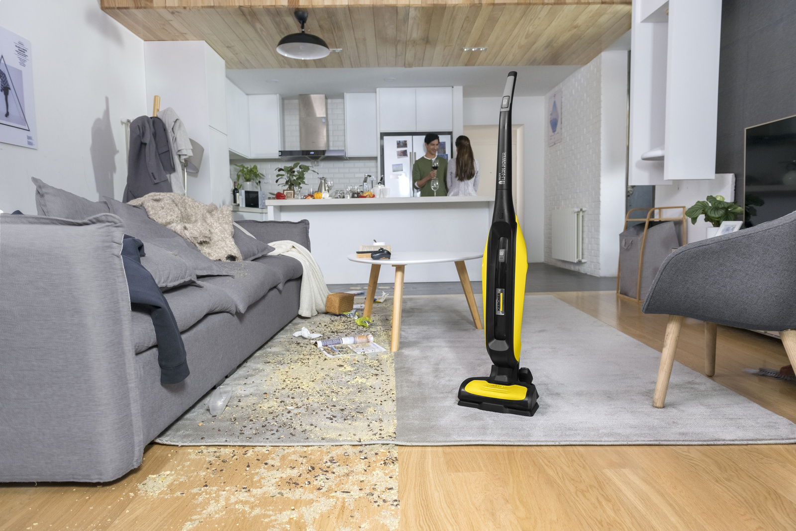 Un limpiador de pisos como el FC 3 Cordless es una excelente alternativa. Ya que tus pisos quedarán 20% más limpios que con los trapeadores convencionales. Gracias a su diseño y ergonomía, se adapta perfectamente al espacio situado bajo los muebles. Además, es ideal para suelos duros compuestos de materiales como: baldosas, parquet, laminado, PVC y vinilo. Como complemento, el detergente universal para FC mejora los resultados de limpieza y rinde hasta 15 usos.