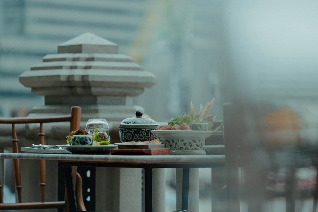 La experiencia puede comenzar fuera de la cocina, con un recorrido opcional por un mercado local a bordo del icónico tuk-tuk de The Peninsula. Durante este trayecto cuidadosamente orquestado, Bangkok se muestra desde una perspectiva íntima: puestos repletos de ingredientes recién cosechados, colores vibrantes y la energía de la ciudad contrastan con la serenidad del viaje. La selección de productos se convierte así en el primer capítulo de una historia que culmina en la mesa.