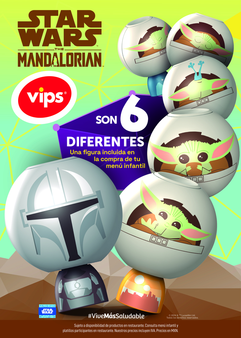 “En Vips, queremos que todos nuestros clientes, chicos y grandes, se sientan igual que en casa cuando celebran con nosotros. Por eso, este Día del Niño queremos que disfruten de platillos ricos y saludables con el toque de Disney. Además, vamos a consentirlos con esta nueva licencia de The Mandalorian que estamos seguros llenará sus comidas de juego e imaginación”, indicó Edgar Salgado, Director de Marketing de Vips.